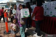 Warga antre menerima bantuan parsel Lebaran dari Jemaat GBI ROCK di halaman GBI ROCK Tulungagung, Jawa Timur, Kamis (12/3/2026). Sebanyak 2.200 paket parsel berisi kebutuhan pokok dan jajanan Lebaran dibagikan kepada keluarga prasejahtera dari 17 desa dan kelurahan di daerah itu sebagai bentuk kepedulian sosial serta dukungan bagi warga Muslim prasejahtera agar dapat merasakan kebahagiaan menyambut Hari Raya Idul Fitri 2026. ANTARA FOTO/Destyan Sujarwoko/foc.