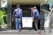 Penyidik Bareskrim membawa kotak plastik untuk membawa barang bukti saat penggeledahan PT Simba Jaya Utama di Berbek Industri, Waru, Sidoarjo, Jawa Timur, Kamis (12/3/2026). Direktorat Tindak Pidana Ekonomi Khusus (Dit Tipideksus) Bareskrim Polri melakukan penyidikan terkait dugaan tindak pidana di bidang minerba berupa penambangan emas ilegal serta tindak pidana pencucian uang (TPPU) yang melibatkan perusahaan tersebut. ANTARA FOTO/Umarul Faruq/nz