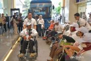 Peserta mudik gratis dari kalangan penyandang disabilitas bersiap menaiki bus di BSI Tower, Jakarta, Selasa (17/3/2026). BSI memberangkatkan 2.261 pemudik dari Jakarta ke sejumlah kota dengan 44 armada bus, termasuk bus khusus penyandang disabilitas. ANTARA FOTO/Reno Esnir/YU