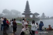 Wisatawan mengunjungi Daya Tarik Wisata (DTW) Ulun Danu Beratan di Tabanan, Bali, Sabtu (21/3/2026). Pengelola objek wisata mencatat per Jumat (20/3) jumlah kunjungan wisatawan nusantara pada liburan Idul Fitri 1447 Hijriah mengalami peningkatan sebanyak 1.100 orang dibandingkan hari biasa yakni rata-rata 600 orang per hari, dan diprediksi jumlah kunjungan akan meningkat hingga Senin (23/3). ANTARA FOTO/Nyoman Hendra Wibowo/rwa.
