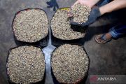 Perkerja memperlihatkan biji kopi robusta di UKM Taufik Kopi, Banda Aceh, Aceh, Kamis (26/3/2026). Pelaku usaha tersebut mengolah kopi robusta secara tradisional yang dianggap memiliki cita rasa khas yang berbeda dibandingkan pengolahan secara modern, sekaligus memenuhi permintaan pasar lokal hingga ke sejumlah daerah seperti Sumatera Utara, Batam, Jakarta, dan Kalimantan Timur dengan harga jual Rp140 ribu per kilogram. ANTARA FOTO/Akramul Muslim/YU