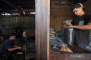 Pekerja mendinginkan biji kopi setelah proses penyangraian di UKM Taufik Kopi, Banda Aceh, Aceh, Kamis (26/3/2026). Pelaku usaha tersebut mengolah kopi robusta secara tradisional yang dianggap memiliki cita rasa khas yang berbeda dibandingkan pengolahan secara modern, sekaligus memenuhi permintaan pasar lokal hingga ke sejumlah daerah seperti Sumatera Utara, Batam, Jakarta, dan Kalimantan Timur dengan harga jual Rp140 ribu per kilogram. ANTARA FOTO/Akramul Muslim/YU
