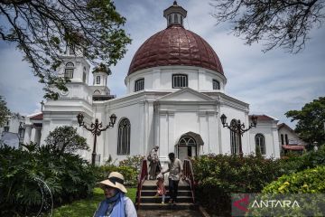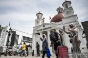 Wisatawan berkunjung di kawasan Cagar Budaya Nasional Kota Lama, Semarang, Jawa Tengah, Jumat (27/3/2026). Dinas Kebudayaan, Pariwisata, dan Ekonomi Kreatif (Disbudparekraf) Jawa Tengah mencatat kunjungan wisatawan ke Jawa Tengah selama periode libur panjang Lebaran 2026 (13-25 Maret 2026) mencapai 687.470 orang atau meningkat 5,25 persen dibandingkan periode yang sama pada 2025, dengan Kota Lama Semarang menjadi salah satu destinasi favorit. ANTARA FOTO/Aprillio Akbar/sgd