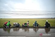 Sejumlah pemudik arus balik sepeda motor berhenti untuk mengenakan jas hujan Jalan Pantura, Kabupaten Subang, Jawa Barat, Rabu (25/3/2026). Sejumlah pemudik arus balik memilih pulang ke arah Jakarta pada 25 Maret 2026 atau H+3 Lebaran Idul Fitri untuk menghindari kemacetan sesuai imbauan Menteri Perhubungan Dudy Purwagandhi agar menghindari perjalanan saat puncak arus balik pada 24, 28, dan 29 Maret 2026. ANTARA FOTO/Fauzan/sgd