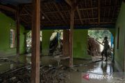 Seorang warga memeriksa kondisi rumahnya yang rusak akibat terjangan banjir bandang karena jebolnya tanggul Sungai Tuntang di Dukuh Solondoko, Desa Trimulyo, Kecamatan Guntur, Demak, Jawa Tengah, Sabtu (4//4/2026). Menurut data sementara yang dihimpun Pusdatinkom BNPB hingga Sabtu (4/4) pukul 09.00 WIB, jebolnya sejumlah titik tanggul Sungai Tuntang yang tak mampu menampung debit air hujan dari hulu ke hilir pada Jumat (3/4) menyebabkan banjir melanda delapan desa di empat kecamatan Kabupaten Demak, satu orang meninggal, 2.839 jiwa mengungsi ke sejumlah lokasi pengungsian serta lima rumah roboh dan 13 lainnya rusak sedang hingga berat. ANTARA FOTO/Aji Styawan/tom.