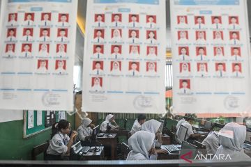 Siswa mengerjakan soal ujian Tes Kemampuan Akademik (TKA) Asesmen Nasional Berbasis Komputer di SMP Negeri 61 Jakarta, Jakarta, Selasa (7/4/2026). Kementerian Pendidikan Dasar dan Menengah (Kemendikdasmen) menyelenggarakan TKA Nasional pada jenjang SD/MI, SMP/MTs, dan SMA/MA/SMK guna memetakan mutu pendidikan, validator Seleksi Nasional Berdasarkan Prestasi (SNBP) serta seleksi masuk ke jenjang pendidikan selanjutnya. ANTARA FOTO/Sulthony Hasanuddin/agr