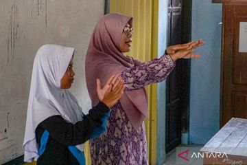 Petugas kesehatan menunjukkan cara cuci tangan yang baik dan benar di SDN Karangasem 05, Kabupaten Batang, Jawa Tengah, Kamis (9/4/2026). Pemerintah setempat melalui Puskesmas Batang II memberikan obat cacing gratis kepada sekitar 3.000 pelajar di 17 sekolah dasar dan madrasah di Kabupaten Batang yang bertujuan menangkal infeksi cacing agar tubuh para murid mampu menyerap gizi makanan secara maksimal untuk mendorong perkembangan kemampuan kognitif dan perbaikan prestasi. ANTARA FOTO/Harviyan Perdana Putra/nym.