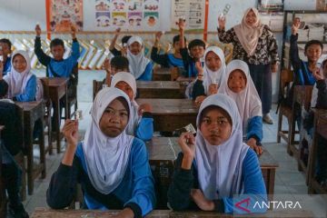 Sejumlah siswa dan siswi menunjukkan obat cacing di SDN Karangasem 05, Kabupaten Batang, Jawa Tengah, Kamis (9/4/2026). Pemerintah setempat melalui Puskesmas Batang II memberikan obat cacing gratis kepada sekitar 3.000 pelajar di 17 sekolah dasar dan madrasah di Kabupaten Batang yang bertujuan menangkal infeksi cacing agar tubuh para murid mampu menyerap gizi makanan secara maksimal untuk mendorong perkembangan kemampuan kognitif dan perbaikan prestasi. ANTARA FOTO/Harviyan Perdana Putra/nym.