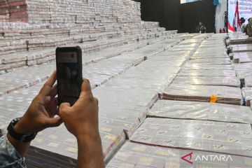 Petugas memotret tumpukan uang dari kegiatan Penyerahan Denda Administratif dan Penyelamatan Keuangan Negara serta Penguasaan Kembali Kawasan Hutan Tahap VI di Gedung Bundar Kejaksaan Agung di Jakarta, Jumat (10/4/2026). Satgas PKH menyerahkan Rp11,42 triliun ke kas negara dari hasil penagihan denda administrasi bidang kehutanan sebanyak Rp7,23 triliun, penanganan perkara tipikor oleh Kejaksaan periode Januari-Maret 2026 Rp1,96 Triliun, hasil PNBP yang berasal dari denda lingkungan hidup Rp1,14 Triliun, penerimaan setoran pajak Rp967,7 miliar dan pendapatan negara dari penyetoran pajak PT Agrinas Palma Nusantara Januari-Februari 2026 sebanyak Rp108,5 miliar. ANTARA FOTO/Fakhri Hermansyah/hma