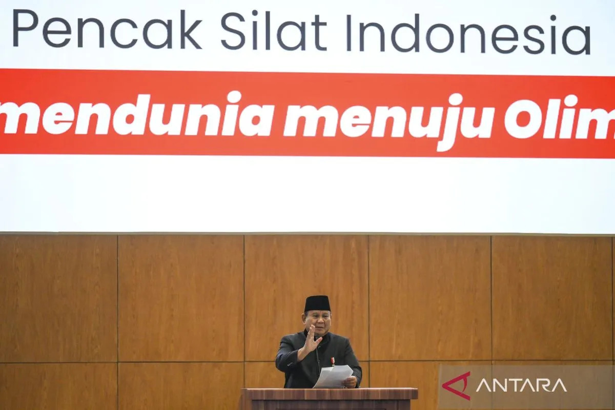 Presiden yang juga Ketua Umum Pengurus Besar Ikatan Pencak Silat Indonesia (PB IPSI) Prabowo Subianto menyampaikan pidato saat menghadiri pembukaan Musyawarah Nasional (Munas) XVI PB IPSI di JCC Senayan, Jakarta, Sabtu (11/4/2026). Pada Munas tersebut Prabowo Subianto mengatakan tidak akan melanjutkan jabatannya sebagai Ketua Umum PB IPSI. ANTARA FOTO/Hafidz Mubarak A/sgd