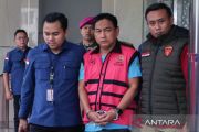 Ketua Ombudsman RI 2026 - 2031 Hery Susanto masuk ke dalam mobil tahanan seusai menjalani pemeriksaan dan penetapan tersangka di Gedung Bundar Jampidsus Kejaksaan Agung, Jakarta, Kamis (16/4/2026). Kejaksaan Agung menetapkan Hery Susanto sebagai tersangka dalam kasus dugaan korupsi tata kelola usaha pertambangan nikel di Sulawesi Utara. ANTARA FOTO/Muhammad Iqbal/tom.
