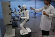 Insinyur menguji coba robot untuk keperluan industri di Guangdong Power Grid Robotics Laboratory, Guangzhou, Guangdong, China, Kamis (16/4/2026). Guangdong Power Grid Robotics Laboratory yang merupakan anak perusahaan listrik negara China Southern Power Grid tersebut fokus untuk mengembangkan robot yang dapat menggantikan manusia dalam penanganan pekerjaan berbahaya seperti saat berada di ketinggian, penanggulangan bencana alam hingga pengoperasian jaringan listik. ANTARA FOTO/Desca Lidya Natalia/sgd
