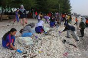 Sejumlah pelajar memungut sampah di Pantai Kenjeran, Surabaya, Jawa Timur, Sabtu (18/4/2026). Kegiatan yang dilakukan oleh pelajar-pelajar SD, SMP, mahasiswa, serta orang tua murid dan komunitas Tunas Hijau tersebut guna menjaga kebersihan lingkungan dari sampah sehingga tercipta kawasan yang nyaman dan bersih sesuai dengan program Gerakan Indonesia ASRI (Aman, Sehat, Resik, dan Indah). ANTARA FOTO/Didik Suhartono/nz
