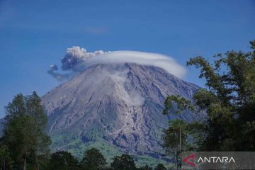 Asap vulkanik keluar dari kawah Gunung Semeru terlihat dari Desa Supiturang, Lumajang, Jawa Timur, Senin (20/4/2026). Berdasarkan laporan Pusat Vulkanologi dan Mitigasi Bencana Geologi (PVMBG) periode pengamatan Minggu (19 April 2026) 00:00-24:00, Semeru tercatat mengalami 49 kali gempa letusan, satu kali gempa awan panas guguran, dan 18 kali gempa hembusan, sehingga warga diimbau tidak beraktivitas di sektor tenggara sepanjang Besuk Kobokan hingga jarak 13 kilometer dari kawah. ANTARA FOTO/Irfan Sumanjaya/kyeANTARA FOTO/Irfan Sumanjaya (ANTARA FOTO/Irfan Sumanjaya)