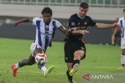 Pesepak bola Dewa United Banten FC Nick Kuipers (kanan) berebut bola dengan pesepak bola Persib Bandung Ramon De Andrade Souza (kiri) pada pertandingan BRI Super League di Banten International Stadium, Kabupaten Serang, Banten, Senin (20/4/2026). Pertandingan berakhir imbang dengan skor 2-2. ANTARA FOTO/Angga Budhiyanto/tom.