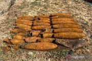 Temuan bom lama yang telah berkarat hasil penggalian tergeletak di area Taxiway Juliet Extension, kompleks Bandara Internasional Ninoy Aquino, Kota Pasay, Filipina, Minggu (26/4/2026). Menurut laporan media setempat, bom-bom tersebut ditemukan oleh pekerja konstruksi saat proses penggalian yang kemudian melaporkannya kepada polisi dan otoritas bandara. ANTARA FOTO/Philippine National Police Aviation Security Group Handout via Xinhua/bar