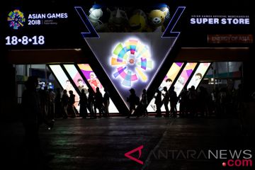 Siluet pengunjung mengantre di Merchandise Store Asian Games, Kawasan Gelora Bung Karno, Senayan, Jakarta, Kamis (23/8/2018). (ANTARA FOTO/M Agung Rajasa)