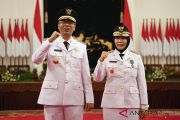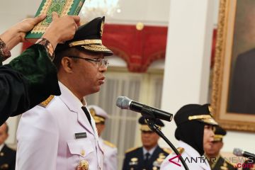 Gubernur Nusa Tenggara Barat (NTB) terpilih Zulkifliemansyah (kiri) dan Wakil Gubernur terpilih Sitti Rohmi Djalilah (kanan) mengikuti prosesi pelantikan di Istana Negara, Jakarta, Rabu (19/9/2018). Presiden Joko Widodo melantik Zulkifliemansyah dan Sitti Rohmi Djalilah menjadi Gubernur dan Wakil Gubernur NTB periode 2018-2023. ANTARA FOTO/Wahyu Putro A/wsj.