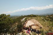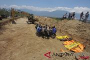 Suasana prosesi pemakaman massal jenazah korban gempa tsunami Palu-Donggala di Poboya, Mantikulore, Palu, Senin (1/10/2018). Korban meninggal dunia akibat gempa dan tsunami Palu-Donggala mulai dimakamkan secara massal dan dilakukan bertahap. ANTARA FOTO/Muhammad Adimaja/wsj.