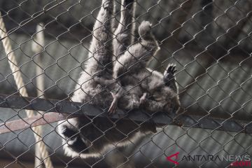 Seekor Owa Jawa (Hylobates Moloch) menggendong bayinya yang berumur 28 hari jelang Hari Owa Internasional di Bandung Zoo, Bandung, Jawa Barat, Rabu (24/10/2018). Owa jawa merupakan sejenis primata anggota suku Hylobatidae yang populasinya tersisa antara 1.000–2.000 ekor. ANTARA FOTO/M Agung Rajasa/wsj.