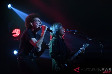 Grup musik God Bless tampil pada konser bertajuk "45th God Bless Anniversary eConcert" di Telkom Landmark Tower, Jakarta, Sabtu (3/11/2018). Konser ini digelar untuk merayakan 45 Tahun kiprah God Bless dalam blantika musik Tanah Air. ANTARA FOTO/Wahyu Putro A/kye.