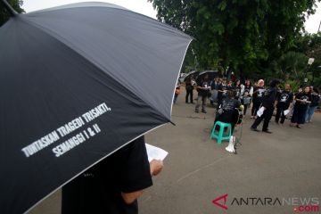 Jaringan Solidaritas Korban untuk Keadilan melakukan aksi Kamisan ke-561 di depan Istana Merdeka, Jakarta, Kamis (8/11/2018). Dalam aksinya mereka menuntut pemerintah untuk mewujudkan komitmen dalam menyelesaikan kasus pelanggaran HAM berat pada masa lalu khususnya "Tragedi Semanggi 1". ANTARA FOTO/Rivan Awal Lingga/pras.