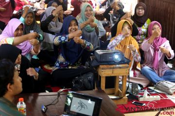 Guru Sekolah Inklusi dan Sekolah Luar Biasa (SLB) mengikuti petalihan bahasa isyarat di Banyuwangi, Jawa Timur, Jumat (9/11/2018). Pelatihan tersebut bertujuan untuk mensosialisasikan bahasa isyarat Indonesia (Bisindo) yang merupakan bahasa berkembang secara alami dikelompok masyarakat tuli Indonesia. ANTARA FOTO/Budi Candra Setya/ama.