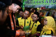 Menteri Agama Lukman Hakim Saifudin (kiri) mengamati karya ilmiah di sela-sela acara Anugerah Guru dan Tenaga Kependidikan (GTK) Madrasah Berprestasi 2018 di Surabaya, Jawa Timur, Minggu (25/11/2018). Acara puncak peringatan Hari Guru Nasional 2018 tersebut diikuti sekitar 2.000 guru madrasah dari 34 provinsi. ANTARA FOTO/M Risyal Hidayat/ama.