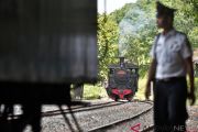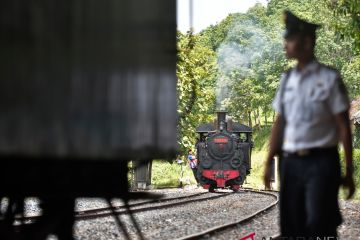 Lokomotif uap B2502 yang menarik kereta wisata melakukan langsir di Stasiun Tuntang, Kabupaten Semarang, Jawa Tengah, Sabtu (1/12/2018). Keberadaan kereta api wisata dengan lokomotif diesel dan uap menjadi salah satu daya tarik wisata utama dari Museum Kereta Api Ambarawa. ANTARA FOTO/Fanny Octavianus/wsj.