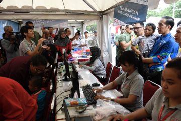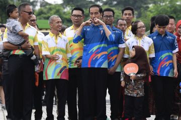 Presiden Joko Widodo (tengah) menghadiri Peringatan Hari Disabilitas Internasional Tahun 2018 di Bekasi, Jawa Barat, Senin (3/12/2018). ANTARA FOTO/Puspa Perwitasari/kye.