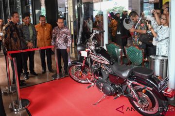 Presiden Joko Widodo (kiri) didampingi Mensesneg Pratikno (kanan), Wakil Ketua KPK Laode M Syarif (kedua kiri) dan Jaksa Agung M Prasetyo (kedua kanan) mengamati motor Harley Davidson sitaan KPK ketika menghadiri peringatan Hari Anti Korupsi Dunia (Hakordia) 2018 di Jakarta, Selasa (4/12/2018). Peringatan Hakordia 2018 yang diselenggarakan oleh KPK mengagendakan sejumlah kegiatan seperti konferensi pemberantasan korupsi, penandatanganan komitmen partai politik peserta pemilu 2019, lelang barang rampasan dan pameran anti korupsi. ANTARA FOTO/Wahyu Putro A/wsj.