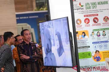 Presiden Joko Widodo (kanan) didampingi Wakil Ketua KPK Laode M Syarif (kiri) mengamati informasi di stan pameran anti korupsi ketika menghadiri peringatan Hari Anti Korupsi Dunia (Hakordia) 2018 di Jakarta, Selasa (4/12/2018). Peringatan Hakordia 2018 yang diselenggarakan oleh KPK mengagendakan sejumlah kegiatan seperti konferensi pemberantasan korupsi, penandatanganan komitmen partai politik peserta pemilu 2019, lelang barang rampasan dan pameran anti korupsi. ANTARA FOTO/Wahyu Putro A/wsj.