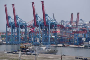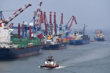 Kapal tunda melintas di antara kapal yang melakukan bongkar muat peti kemas di Pelabuhan Tanjung Priok, Jakarta Utara, Selasa (18/12/2018). Bank Indonesia mendorong berlanjutnya insentif dan upaya maksimal untuk meningkatkan nilai ekspor menyusul membesarnya defisit neraca perdagangan November 2018 menjadi sebesar 2,05 miliar dolar Amerika Serikat yang merupakan defisit tertinggi sepanjang tahun. ANTARA FOTO/Sigid Kurniawan/aww.