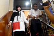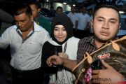 Penyanyi Dangdut Via Vallen (kiri) berjalan keluar ruangan seusai menjalani pemeriksaan di Ruang Subdit IV Tindak Pidana Tertentu (Tipidter) Direktorat Kriminal Khusus (Ditreskrimsus) Polda Jawa Timur, Surabaya, Jawa Timur, Kamis (20/12/2018). Via Vallen menjalani pemeriksaan sebagai saksi dalam kasus penjualan kosmetik ilegal dari Derma Skin Care. ANTARA FOTO/M Risyal Hidayat/kye.