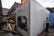 Polisi berjaga di samping kontainer pendingin jenazah untuk jenazah korban tsunami Selat Sunda, di RSUD Berkah, Pandeglang, Banten, Rabu (26/12/2018). Kementerian Kesehatan mengirimkan bantuan satu kontainer pendingin berkapasitas 50 jenazah untuk membantu RSUD Berkah Pandeglang menampung jenazah korban Tsunami Selat Sunda. ANTARA FOTO/Asep Fathulrahman/kye.