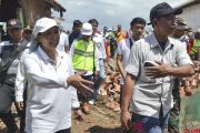 Menteri BUMN Rini Soemarno (kiri) mengunjungi daerah terdampak bencana tsunami di Posko Sumur, Sumur, Pandeglang, Banten, Sabtu (29/12/2018). Kunjungan tersebut dalam rangka memberikan bantuan dari BUMN guna memenuhi kebutuhan dasar korban tsunami berupa tempat tinggal sementara, makanan, serta pakaian layak pakai. ANTARA FOTO/Muhammad Bagus Khoirunas/kye.