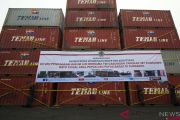 Petugas menunjukkan barang bukti kayu ilegal di Terminal Teluk Lamong, Surabaya, Jawa Timur, Rabu (16/1/2019). Direktorat Penegakan Hukum Kementerian Lingkungan Hidup dan Kehutanan (Ditjen Gakkum LHK) bersama dengan Komando Armada II (Detasemen Intelijen) dan Bareskrim Mabes Polri berhasil mengamankan 199 kontainer berisi kayu ilegal dari Papua yang diangkut KM Selat Mas (TEMAS) di Pelabuhan Teluk Lamong, Surabaya. ANTARA FOTO/Didik Suhartono/wsj.