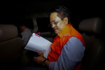 Pemilik PT Jasa Promix Nusantara dan PT Secilia Putri, Sibron Azis memasuki mobil tahanan seusai seusai menjalani pemeriksaan terkait operasi tangkap tangan (OTT) kasus dugaan korupsi Bupati Mesuji di Gedung KPK, Jakarta, Jumat (25/1/2019). KPK menahan lima tersangka terkait kasus dugaan korupsi proyek infrastruktur di Dinas PUPR Kabupaten Mesuji, yakni Bupati Mesuji Khamami dan adiknya Taufik Hidayat, Sekretaris Dinas PUPR Kabupaten Mesuji Wawan Suhendra, pemilik PT Jasa Promix Nusantara dan PT Secilia Putri Sibron Azis serta Kardinal selaku swasta. ANTARA FOTO/Rivan Awal Lingga/wpa/ama.