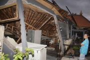 Bangunan restoran yang rusak akibat diterjang banjir di kawasan Candidasa, Karangasem, Bali, Jumat (8/2/2019). Hujan lebat yang mengguyur kawasan Karangasem sejak Kamis (7/2), mengakibatkan banjir di sejumlah titik dan sejumlah bangunan rusak diterjang banjir. ANTARA FOTO/Fikri Yusuf/aww.