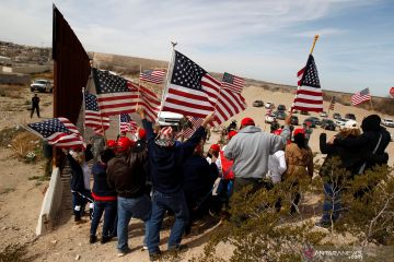 Aksi warga Amerika Serikat mendukung pembangunan tembok perbatasan AS-Meksiko di Ciudad Juarez, Meksiko, Sabtu (9/2/2019). ANTARA FOTO/REUTERS/Jose Luis Gonzalez/pras.