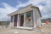 Pekerja menyelesaikan pembangunan hunian tetap bantuan Yayasan Buddha Tzu Chi Indonesia di Kelurahan Tondo, Palu, Sulawesi Tengah, Minggu (17/2/2019). Ribuan unit hunian tetap akan dibangun di atas lahan yang disediakan oleh Pemerintah Kota Palu tersebut, diperuntukkan bagi masyarakat korban bencana alam gempa dan tsunami. ANTARA FOTO/Mohamad Hamzah/wsj.
