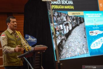 Kepala BNPB Letnan Jenderal TNI Doni Monardo menyampaikan materi saat menjadi "keynote speaker" dalam seminar nasional dengan tema Model Sinergitas Pentahelix Merawat Alam dan Mitigasi Bencana di Bandung, Jawa Barat, Jumat (22/2/2019). Seminar nasional yang dihadiri ratusan peserta dari berbagai lapisan masyarakat tersebut untuk memberikan pemahaman terkait kewaspadaan terhadap potensi bencana yang akan dihadapi masyarakat Jawa Barat. ANTARA FOTO/Raisan Al Farisi/hp.