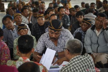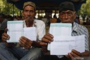Abdi dalem Keraton Kasunanan Surakarta Hadiningrat menunjukkan buku rekening seusai menerima gaji di halaman keraton setempat, Solo, Jawa Tengah, Selasa (26/2/2019). Sebanyak 400 abdi dalem Keraton Kasunanan Surakarta menerima gaji secara nontunai melalui pembagian buku rekening dengan jumlah nominal yang beragam, tergantung lama pengabdian. ANTARA FOTO/Maulana Surya/aww.