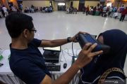 Petugas merekam data identitas warga saat pembuatan Kartu Tanda Penduduk elektronik (e-KTP) Gerakan Indonesia Sadar Adminitrasi Kependudukan (GISA) di Gor Unimal Cunda, Lhokseumawe, Aceh, Kamis (7/3/2019). Kementerian Dalam Negeri RI melalui Dinas Registrasi Kependudukan Aceh (DRKA) dan Disdukcapil kabupaten/kota melakukan perekaman data dan percetakan e-KTP secara massal untuk mengejar 16 ribu lebih masyarakat Kabupaten Aceh Utara dan Kota Lhokseumawe belum membuat e-KTP hingga menjelang Pemilu 2019. ANTARA FOTO/Rahmad/hp.