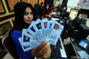 Petugas menunjukkan Kartu Tanda Penduduk elektronik (e-KTP) perekaman massal Gerakan Indonesia Sadar Adminitrasi Kependudukan (GISA) di Gor Unimal Cunda, Lhokseumawe, Aceh, Kamis (7/3/2019). Kementerian Dalam Negeri RI melalui Dinas Registrasi Kependudukan Aceh (DRKA) dan Disdukcapil kabupaten/kota melakukan perekaman data dan percetakan e-KTP secara massal untuk mengejar 16 ribu lebih masyarakat Kabupaten Aceh Utara dan Kota Lhokseumawe belum membuat e-KTP hingga menjelang Pemilu 2019. ANTARA FOTO/Rahmad/hp.