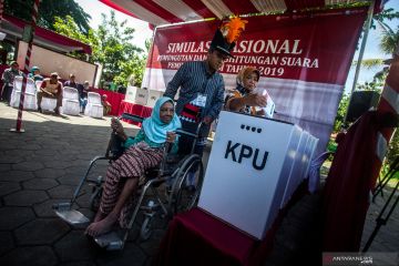 Warga menggunakan hak suaranya saat mengikuti acara Simulasi Nasional Pemungutan dan Perhitungan Suara Pemilu 2019 di area wisata Goa Selarong, Bantul, DI Yogyakarta, Sabtu (9/3/2019). Acara yang digagas oleh KPU pusat itu digelar untuk memberikan edukasi kepada masyarakat tentang proses pemungutan dan penghitungan suara pemilihan umum serentak yang akan dilaksanakan pada 17 April 2019 mendatang. ANTARA FOTO/Andreas Fitri Atmoko/wsj.