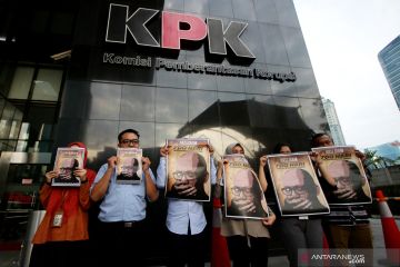 Aktivis Koalisi Masyarakat Sipil Anti Korupsi melakukan aksi diam 700 hari penyerangan Novel Baswedan di Gedung KPK, Jakarta, Selasa (12/3/2019). Dalam aksinya mereka menuntut agar Presiden Joko Widodo segera membentuk Tim Gabungan Pencari Fakta (TGPF) independen untuk menyelesaikan kasus penyiraman air keras terhadap penyidik KPK Novel Baswedan. ANTARA FOTO/Rivan Awal Lingga/wsj.