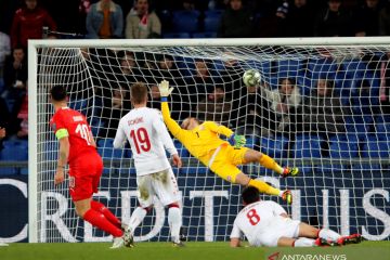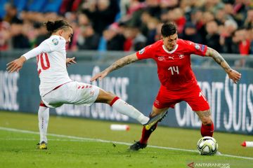 Pesepak bola Swiss Granit Xhaka (kiri) membuat gol dari titip penalti ke gawang Denmark dalam pertandingan Kualifikasi Piala Eropa 2020 Grup D, di Stadion St. Jakob-Park, Basel, Swiss, Selasa (26/3/2016). Swiss akhirnya harus puas dengan hasil imbang 3-3 setelah sebelumnya sempat unggul 3-0 dan berhasil disamakan oleh Denmark. ANTARA FOTO/Reuters- Arnd Wiegmann/hp.