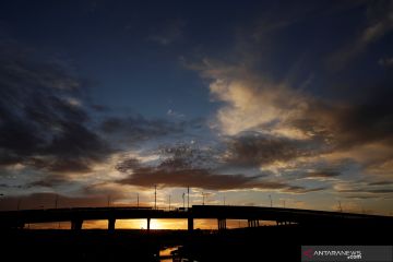 Suasana Jembatan perbatasan The Paso del Norte yang menghubungkan wilayah El Paso, Texas, Amerika Serikat dengan Ciudad Juarez, Meksiko saat matahari terbenam seperti yang terlihat dari Ciudad Juarez, Meksiko, Kamis (4/4/2019) waktu setempat. ANTARA FOTO/REUTERS/Jose Luis Gonzales/wsj.