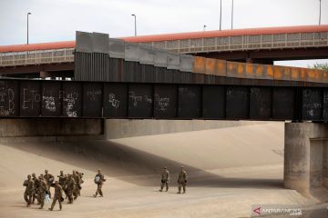 Sejumlah tentara Amerika Serikat berjalan di dekat sebuah daerah di pagar pembatas antara Meksiko dan Amerika Serikat di El Paso, Texas, Amerika Serikat seperti yang terlihat dari Ciudad Juarez, Meksiko, Kamis (4/4/2019) waktu setempat. ANTARA FOTO/REUTERS/Jose Luis Gonzales/wsj.